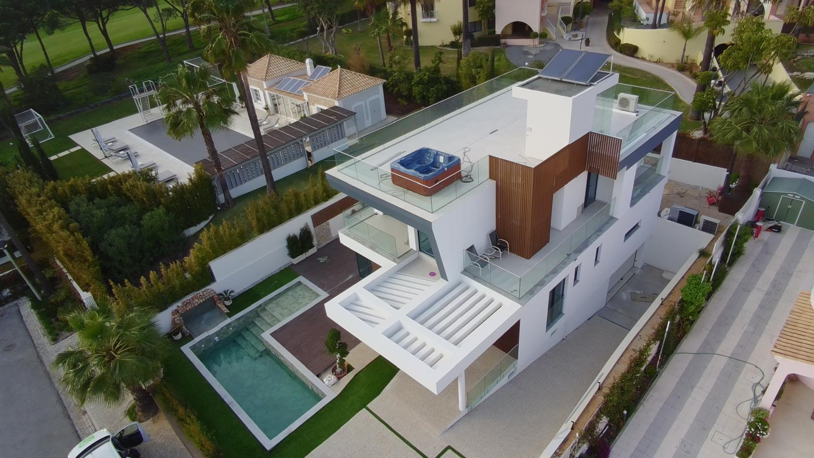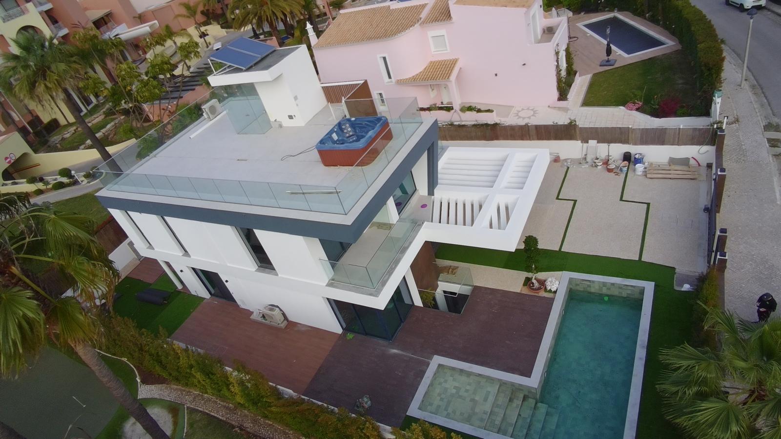On the rooftop, you will find a spacious terrace complete with a built-in barbecue and a relaxing hot tub – the perfect space for entertaining or enjoying the Algarve sun. The basement level includes a private sauna, offering a luxurious wellness retreat within the home.